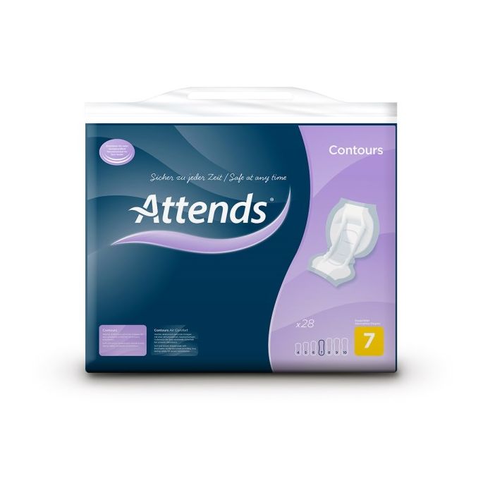 ATTENDS Contours 7 is een anatomisch gevormde inlegger die is ontwikkeld voor volwassenen met zwaar urine- en/of ontlastingsincontinentie. Het product maakt deel uit van een tweedelig incontinentiesysteem en is bedoeld voor gebruik in combinatie met fixatiebroekjes. Door deze combinatie wordt een stabiele ligging en een comfortabele pasvorm ondersteund tijdens intensief dagelijks gebruik.