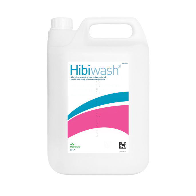 Hibiwash 5 liter is een medisch antimicrobieel wasmiddel op basis van 4% chloorhexidinegluconaat (CHG), bedoeld voor gebruik bij pre- en postoperatieve huidreiniging. De grootverpakking is ontworpen voor gebruik in klinische omgevingen waar frequente toepassing noodzakelijk is. De oplossing is geschikt voor zowel patiënten als zorgpersoneel en draagt bij aan het reduceren van huidflora en het voorkomen van postoperatieve wondinfecties (SSI’s).