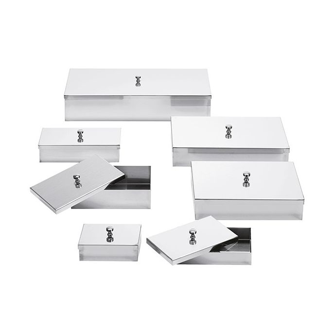 De instrumentenbak met knopdeksel 18 x 12 x 5 cm is een roestvrijstalen tray voor het overzichtelijk neerleggen en afdekken van instrumenten en kleine materialen. Dankzij de combinatie van een stevige bak en een passend deksel kan de inhoud afgeschermd worden wanneer dat gewenst is, terwijl de tray zelf praktisch blijft in gebruik. Het formaat van 18 x 12 cm biedt ruimte voor kleinere sets, en de hoogte van 5 cm maakt deze uitvoering geschikt wanneer er net wat meer inhoud of stapelhoogte nodig is, bijvoorbeeld bij het bijeenhouden van meerdere onderdelen of hulpmiddelen.