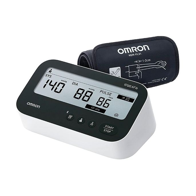 De OMRON M4 Connect AFib is een automatische bovenarm-bloeddrukmeter voor professioneel en thuisgebruik, ontworpen voor betrouwbare metingen van systolische en diastolische bloeddruk en hartslag. Het apparaat is uitgevoerd met Bluetooth-connectiviteit voor koppeling met de OMRON Connect-app en beschikt over een AFib-indicator voor het opsporen van mogelijke atriumfibrillatie tijdens de meting. De M4 Connect wordt geleverd als complete set per stuk, inclusief bovenarmmanchet (22–42 cm), batterijen en gebruiksaanwijzing.